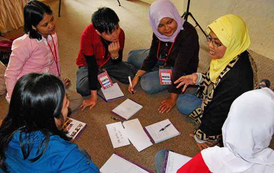 As the work of JASS was gaining momentum in Indonesia and Timor-Leste, three national-level leadership workshops were held in November 2009, employing JASS tools and drawing on the local “alumni” from previous JASS processes. For each workshop, JASS SEA wove together the elements most relevant to the needs of the particular group and context. JASS teams were consulted widely to ensure diversity of class, focus, location and ethnicity, and to successfully negotiate long-standing tensions in certain countries.